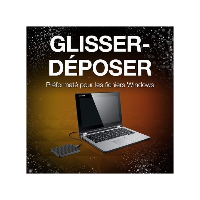 • Ce disque dur externe pour PC Windows permet d’effectuer des sauvegardes en un clin d’œil, par glisser-déposer !